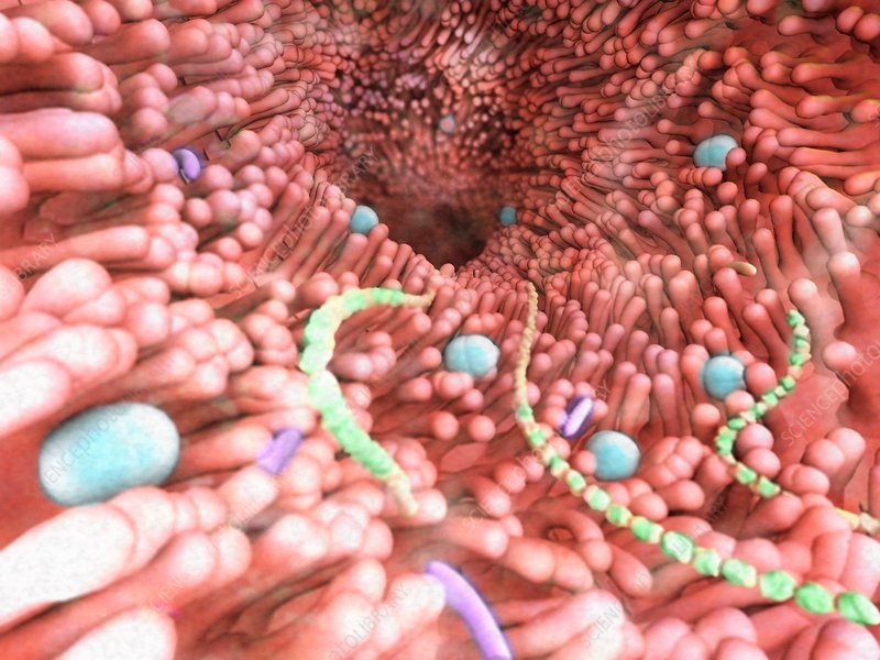 This is not a picture of shag carpeting! These are your beautiful guts filled with lovely, healthy, intestinal bacterial flora. What looks like pink shag carpeting is actually the villi in your intestines that absorb nutrients into your bloodstream and lymphatic system. Because these non-pathogenic bacteria form part of the normal bacterial flora in the human intestines, they cause the digested vitamins, fats, minerals, and other molecules to be delivered to your body.